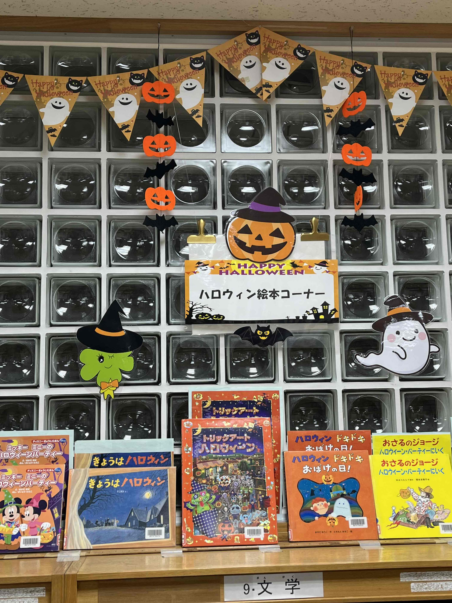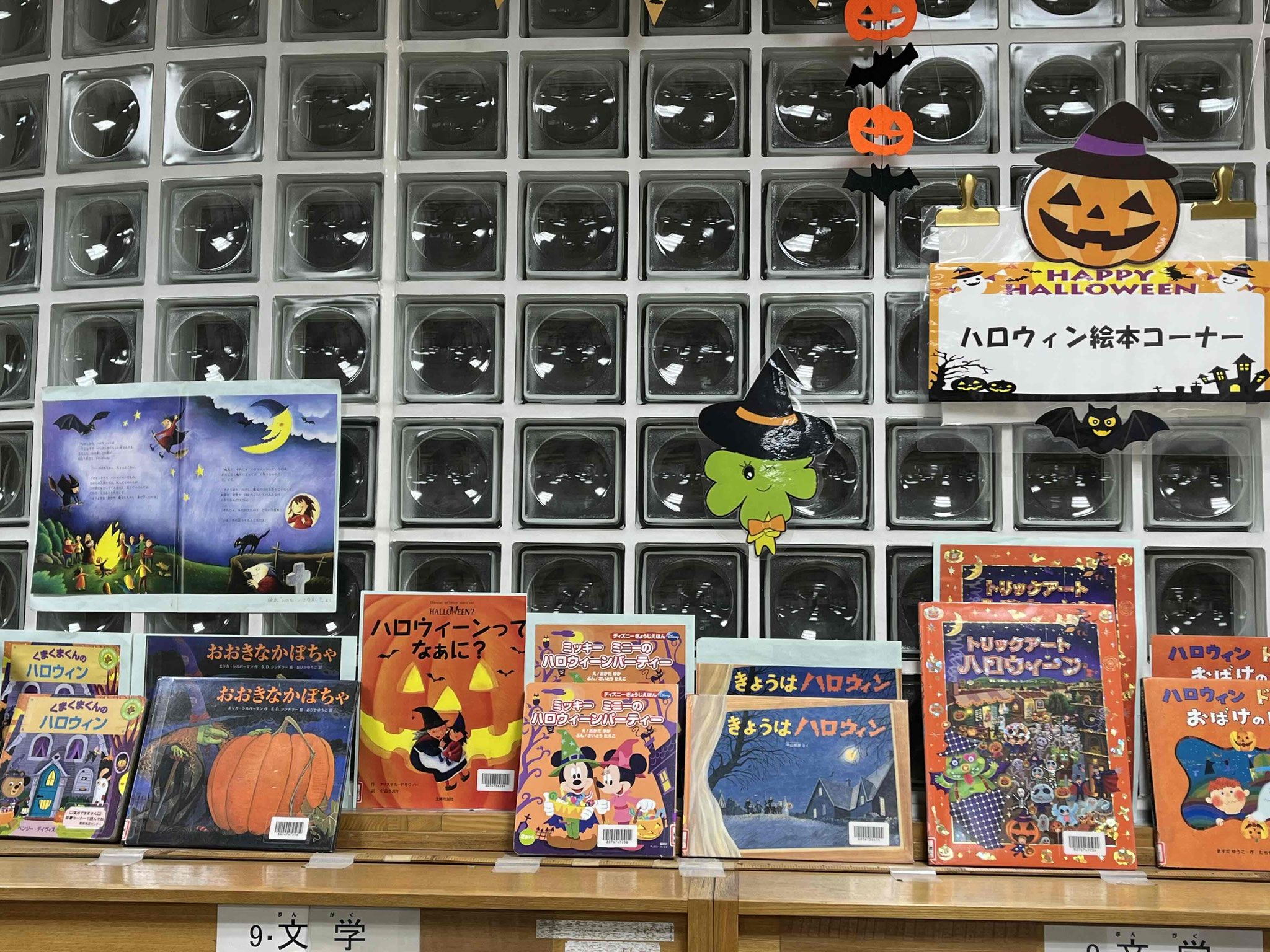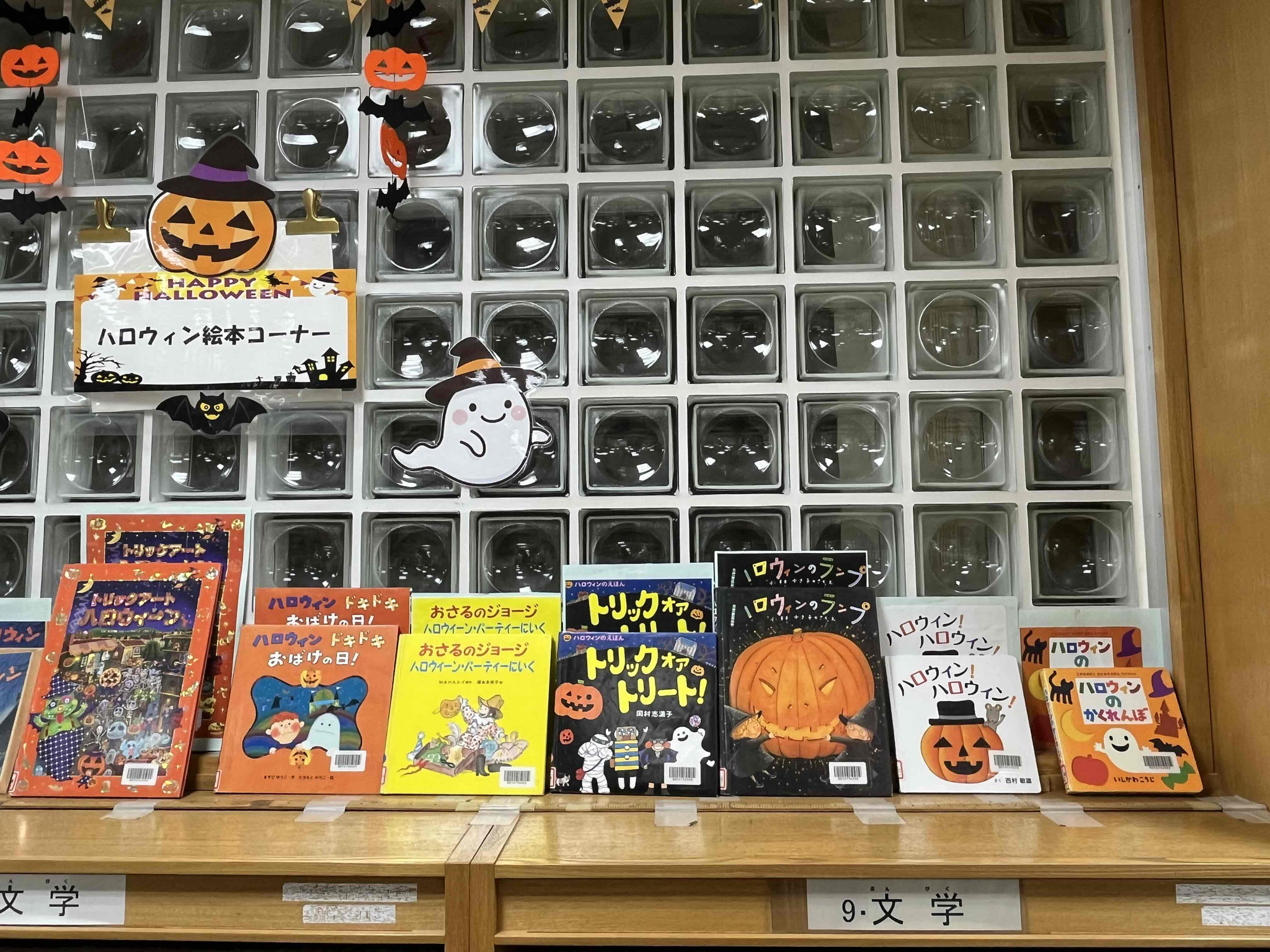 図書コーナー奥棚上では、ハロウィン🎃にちなんだ絵本達をいろいろと集めておすすめしています。